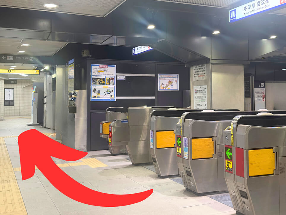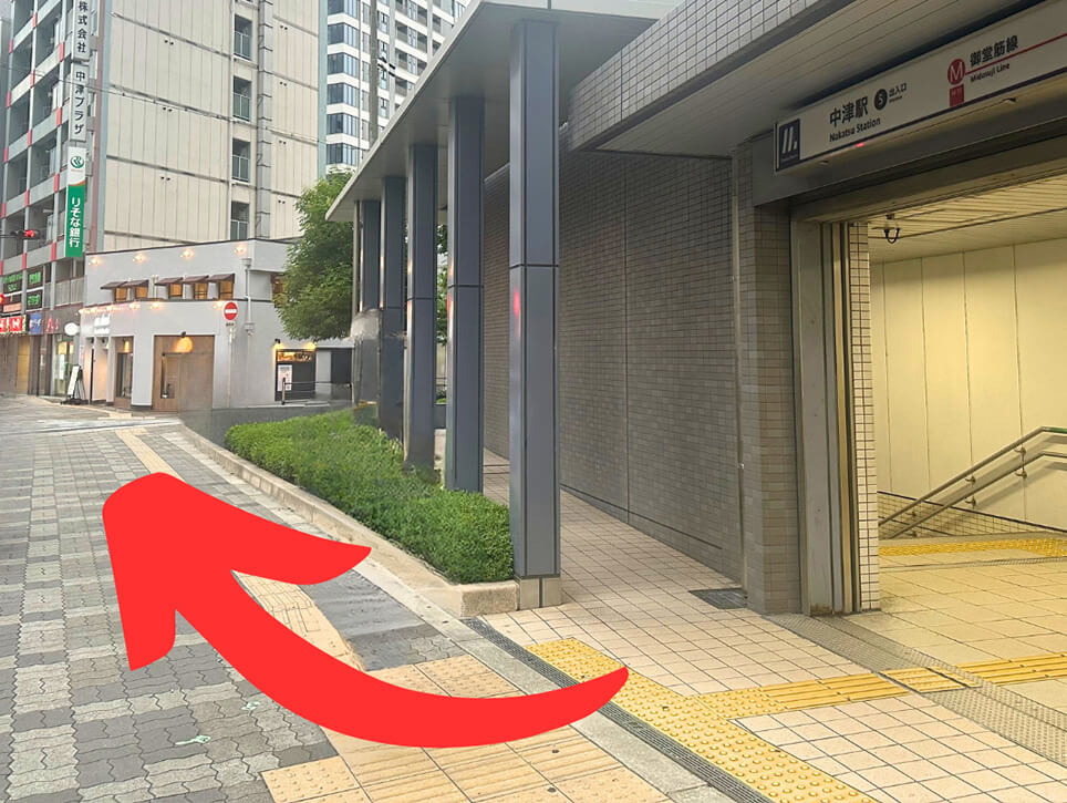 大阪メトロ御堂筋線中津駅「5番出口」階段で地上へでます。